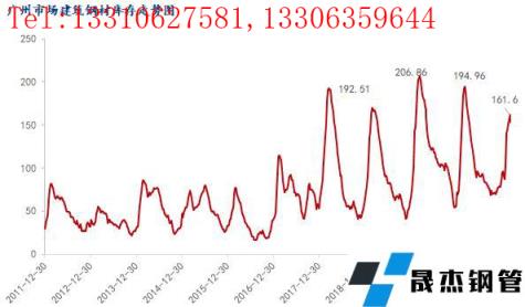 圖2:歷年廣州市場(chǎng)建筑厚壁無縫鋼管庫存走勢(shì) 來源:鋼聯(lián)數(shù)據(jù)