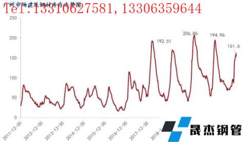 圖2:歷年廣州市場(chǎng)建筑厚壁無(wú)縫鋼管庫(kù)存走勢(shì) 來(lái)源:鋼聯(lián)數(shù)據(jù)
