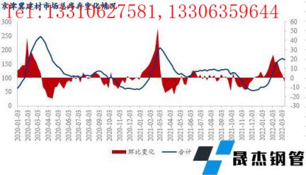 解析:京津冀主要建材市場螺紋庫存減少3.62萬噸,盤線庫存減少0.82萬噸,其中北京市場螺紋庫存減少0.97萬噸,盤線庫存增加0.6萬噸。本周京津冀建材無縫厚壁鋼管廠家螺紋鋼產量23.8萬噸,下降10.7%,主要是樂鋼螺紋鋼軋線以及個別調坯軋材企業(yè)停產,產量略有下降,不過外來無縫厚壁鋼管廠家資源隨著汽運有恢復,發(fā)貨有好轉。從品種上看,本周線盤的庫存占比變動不大,為16.65%。各城市來看,目前邯鄲、唐山、承德市場盤線庫存偏高,盤線庫存占比在25.1%-36.9%,其它市場盤線庫存占比相對合理,在4%-20%。