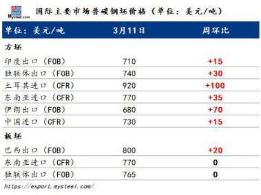 目前中國方坯與海外方坯價(jià)差較大,進(jìn)口成交困難,部分貿(mào)易商進(jìn)行出口操作。了解到,中國方坯出口報(bào)價(jià)在790-800美元/噸CFR東南亞,此外,市場(chǎng)傳聞部分貿(mào)易商轉(zhuǎn)售進(jìn)口至中國的方坯。從菲律賓貿(mào)易商處了解到,本周接到中國資源報(bào)價(jià),但中國方坯規(guī)格在菲律賓市場(chǎng)需求不大,因此買家興趣較小。