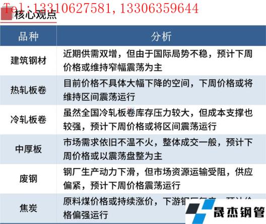 中厚板:3月11日,全國24個(gè)主要城市20mm普板均價(jià)5248元/噸,較上一交易日跌2元/噸。期貨以震蕩盤整為主,在此影響之下,貿(mào)易商紛紛謹(jǐn)慎觀望,報(bào)價(jià)以窄幅盤整為主。成交方面,市場需求依舊不溫不火,整體成交一般。無縫厚壁鋼管廠家方面,本周無縫厚壁鋼管廠家開工率80.00%,周環(huán)比上升1.54%;無縫厚壁鋼管廠家產(chǎn)能利用率80.54%,周環(huán)比下降2.50%,預(yù)計(jì)下周無縫厚壁鋼管廠家開工率與產(chǎn)能利用率或變化不大。庫存方面,上周無縫厚壁鋼管廠家與社會庫存小幅減少,總庫存周環(huán)比降2.50%,年同比降7.05%。綜合來看,預(yù)計(jì)下周中厚板價(jià)格或以震蕩盤整為主。
