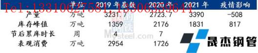 據(jù)樣本數(shù)據(jù)統(tǒng)計(jì),以2020年疫情初發(fā)期間市場(chǎng)情況為例,以2019年數(shù)據(jù)為參考基數(shù)。受疫情影響,2020年春季樣本無縫厚壁鋼管廠家受疫情影響供給影響螺紋鋼產(chǎn)量508萬噸,同時(shí)春節(jié)后累庫周期增加3周,表觀消費(fèi)減少1228萬噸,消費(fèi)供給影響比約為2.42:1。