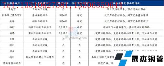 目前,各地均嚴(yán)格落實(shí)疫情防控政策,防止發(fā)生外溢,多數(shù)人員和貨物流通受到不同程度影響。根了解,目前山東地區(qū)鋼鐵企業(yè)生產(chǎn)暫時(shí)影響不大,但貿(mào)易流通和終端施工受到較大影響。山東資訊團(tuán)隊(duì)近日調(diào)研了山東各地市的工地施工及貿(mào)易流通情況,詳情見下表: