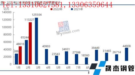 2月春節(jié)以來,全國迎來開工潮,甘肅、吉林、山東、陜西、湖北、浙江、湖南、江西、云南、福建等10省相繼舉行省級重大項目集中開工活動。據(jù)不完全統(tǒng)計,2022年2月,全國各地共開工20459個項目,總投資額11.3萬億,2月開工項目數(shù)量環(huán)比增208.4%,總投資額環(huán)比增132.9%,同比增73.5%。