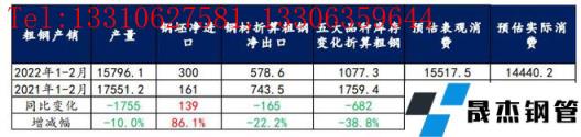 綜上所述,1-2月粗鋼實(shí)際消費(fèi)同比降幅僅為5%,明顯高于市場(chǎng)預(yù)期。但從后期供需預(yù)估表現(xiàn)來看,厚壁無縫鋼管復(fù)產(chǎn)節(jié)奏或高于需求釋放力度,進(jìn)而使得消費(fèi)承壓,價(jià)格上漲難度加大。