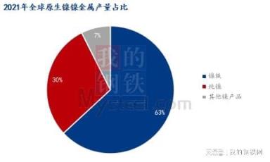 原生鎳中,63%為鎳鐵,鎳鐵中78%為鎳生鐵、22%為水淬鎳。鎳生鐵又可分為低、中、高鎳生鐵,對應鎳含量為1.5%-1.8%、4%-8%、8%-15%。
