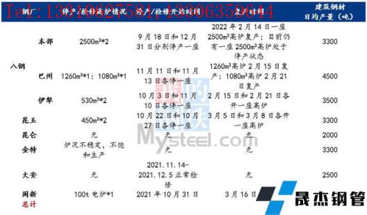 2021年為完成新疆粗鋼產(chǎn)量限產(chǎn)目標(biāo)和應(yīng)對(duì)冬季市場需求大幅減量的市場環(huán)境,新疆主要建筑厚壁無縫鋼管生產(chǎn)企業(yè)在2021年11月-12月均執(zhí)行不同程度的減限產(chǎn)措施。據(jù)統(tǒng)計(jì),2021年底新疆主要無縫厚壁鋼管廠家中僅八鋼(本部)、昆侖鋼鐵、金特鋼鐵和哈密大安處于在產(chǎn)狀態(tài),各無縫厚壁鋼管廠家日均產(chǎn)量維持在700-2500噸左右,八鋼巴州與伊鋼基地、昆玉鋼鐵和閩新鋼鐵則完全處于停產(chǎn)狀態(tài),停產(chǎn)時(shí)間長達(dá)3.5-4.5個(gè)月??缛?022年之后,金特鋼鐵產(chǎn)量有所抬升,但由于高爐鐵水產(chǎn)量不穩(wěn)定,日均建筑厚壁無縫鋼管產(chǎn)量在2000-3500噸之間浮動(dòng),而其他在產(chǎn)無縫厚壁鋼管廠家受季節(jié)性淡季影響依舊處于不飽和生產(chǎn)狀態(tài)。