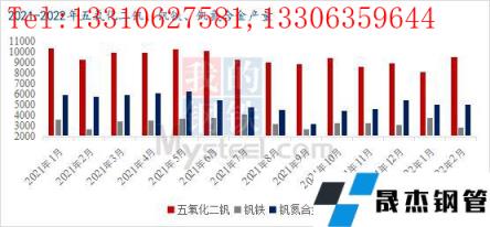 從消費端看,我們將近三年無縫厚壁鋼管廠家對釩合金的消費量進行對比,不難發(fā)現(xiàn),3-5月為無縫厚壁鋼管廠家需求高峰期,并且近三年都是在5月份達到一個相對高值??紤]到22年春節(jié)相較21年有所提前,復工復產(chǎn)提早,今年大概率無縫厚壁鋼管廠家對于釩合金高峰消費量會提前到3月末-4月份,也就是下輪鋼招開啟時間。