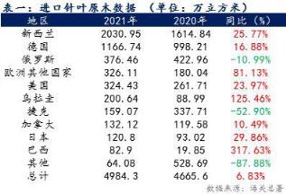 引言:我國原木進(jìn)口多年來保持正增長,在2020年的4665.6萬立方米基數(shù)下,2021年進(jìn)口針葉原木同比增加仍舊達(dá)6.83個點(diǎn) ,現(xiàn)國際形勢波動,在保整內(nèi)需情況下預(yù)計(jì)進(jìn)口格局將有調(diào)整。