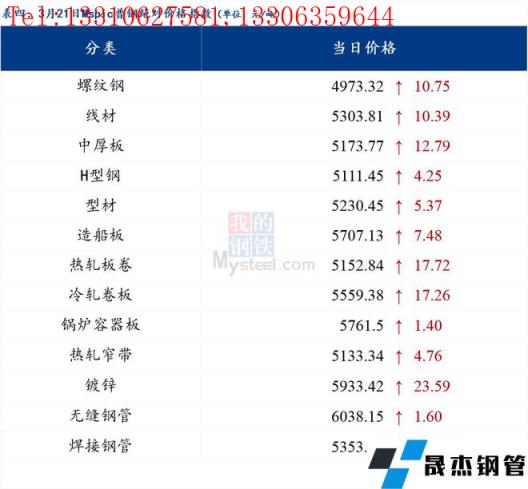 3月21日普鋼絕對(duì)價(jià)格指數(shù)變化:綜合指數(shù)5221.43,上漲12.38;螺紋鋼指數(shù)4973.32,上漲10.75;線材指數(shù)5303.81,上漲10.39;熱軋板卷指數(shù)5152.84,上漲17.72;冷軋板卷指數(shù)5559.38,上漲17.26;中厚板指數(shù)5173.77,上漲12.79。