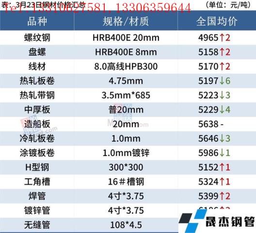 建筑厚壁無(wú)縫鋼管:3月23日,全國(guó)31個(gè)主要城市20mm三級(jí)抗震螺紋鋼均價(jià)4965元/噸,較上個(gè)交易日漲2元/噸。短期來(lái)看,受疫情影響,目前市場(chǎng)仍然處于供需兩弱局面,預(yù)計(jì)24日國(guó)內(nèi)建筑厚壁無(wú)縫鋼管價(jià)格或?qū)⒀永m(xù)窄幅震蕩運(yùn)行態(tài)勢(shì)。