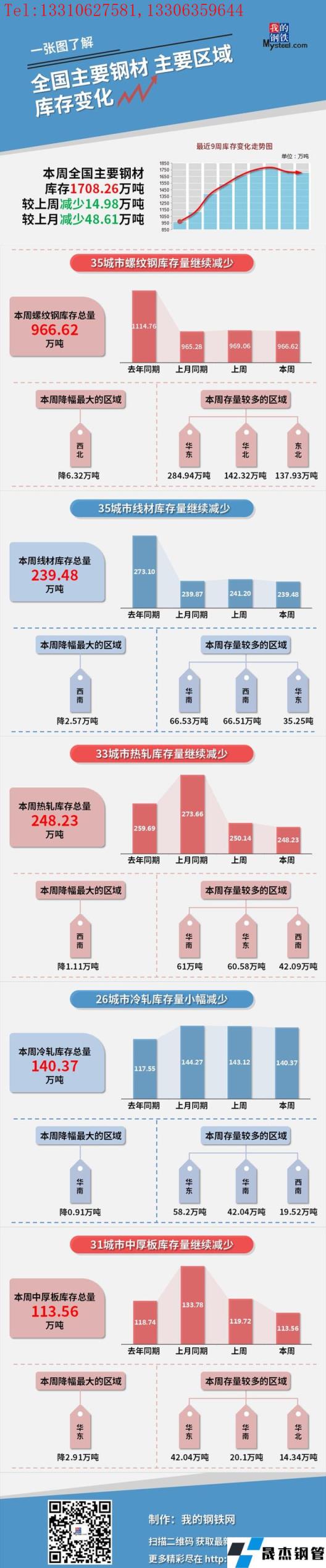 本周,全國主要厚壁無縫鋼管社會(huì)庫存1708.26萬噸,較上周減少14.98萬噸,較上月減少48.61萬噸;螺紋鋼庫存總量966.62萬噸。