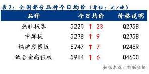 今日全國部分品種均價(jià)上漲,整體漲幅為6~23元/噸。