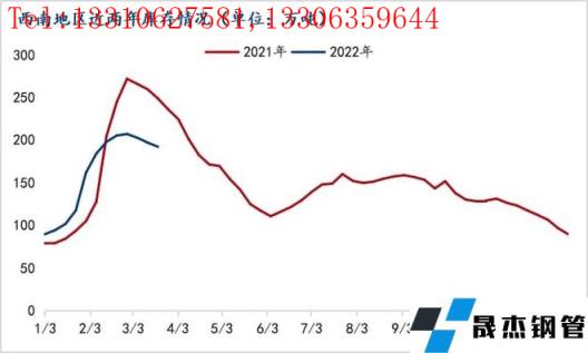 三月份西南地區(qū)建筑厚壁無(wú)縫鋼管窄幅震蕩運(yùn)行,下游復(fù)工復(fù)產(chǎn)不及預(yù)期、全國(guó)疫情再次擴(kuò)散、俄烏局勢(shì)沖突未息等多重因素疊加,放緩了季節(jié)性需求釋放的速度,西南整體去庫(kù)存速度同比偏緩慢。筆者就西南地區(qū)庫(kù)存數(shù)據(jù)情況作簡(jiǎn)要分析。