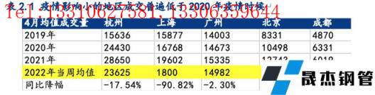 上海疫情爆發(fā)初期,浙江只有嘉興有疫情管控,但整個(gè)浙江的社庫去庫并不明顯,后隨著江蘇、上海管控措施加嚴(yán),使得周邊來杭州提庫需求增加,截止到4月29日杭州社庫127萬噸,同比降7.3%;西南、兩廣地區(qū)同樣未受到疫情影響,社庫反映出真實(shí)需求,去庫速率不及過去兩年同期,且成交均低于2020年疫情時(shí)的同期。從建材直供量數(shù)據(jù)顯示自3月中旬后,直供量改善力度有限,由此可見,受疫情影響小的地區(qū),實(shí)際厚壁無縫鋼管需求不容樂觀,疫情結(jié)束后這些地區(qū)為需求帶來的增量有限。