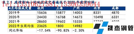 自3月中旬以來,受上海、江蘇、山東等地疫情封控影響,下游工地施工節(jié)奏大幅放緩。華東地區(qū)螺紋鋼表觀消費量3月中旬為156萬噸/周,4月中旬僅119萬噸/周,下降了23%。若長三角疫情在5月上旬得到控制,復(fù)工復(fù)產(chǎn)逐步有序恢復(fù)。我們根據(jù)歷史經(jīng)驗和今年的需求特點,推演認(rèn)為螺紋周均表需(鋼聯(lián)口徑)有望達(dá)到340-350萬噸/周。而其他受疫情影響較小的地區(qū),社庫去庫速率緩慢,成交低于2020年同期,實際厚壁無縫鋼管需求不容樂觀,疫情結(jié)束后這些地區(qū)為需求帶來的增量有限。