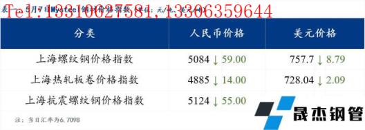 分地區(qū)方面,上海螺紋鋼價(jià)格指數(shù)5084,下跌59.0;上海熱軋板卷價(jià)格指數(shù)4885,下跌14.0。(單位:元/噸)