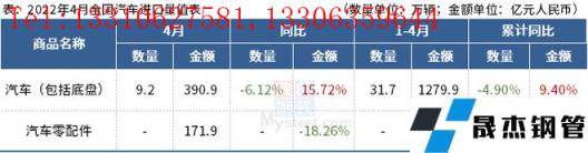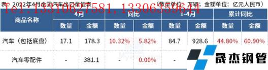 免責(zé)聲明:本網(wǎng)站(山東聊城晟杰無縫鋼管廠www.abagaf.com)刊載的“海關(guān)總署:4月中國出口汽車17.1萬輛,同比增長10.32%”等均源于網(wǎng)絡(luò),版權(quán)歸原作者所有,且僅代表原作者觀點,本文所載信息僅供參考。轉(zhuǎn)載僅為學(xué)習(xí)與交流之目的,如無意中侵犯您的合法權(quán)益,請及時聯(lián)系刪除。本網(wǎng)站刊登此篇文章并不意味著本站贊同其觀點或證實其內(nèi)容的真實性,我們不對其科學(xué)性、嚴(yán)肅性等作任何形式的保證。如果侵犯了您的版權(quán),請盡快聯(lián)系我們予以撤銷,謝謝合作!