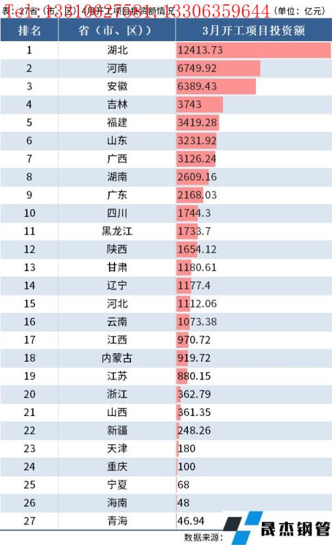資料顯示,湖北省是此次唯一超萬(wàn)億元的省份,開工總投資約為12414億元,排名第一。其次是河南、安徽,總投資額分別為6750億元、6389億元。