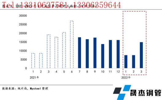 房地產新周期下,房企拿地成為房屋新開工較好的領先指標,而厚壁無縫鋼管需求處于房地產開發(fā)的前周期,短期內受到新開工面積的直接影響(通常開發(fā)商在拿地后1-6月新開工,房屋開工后1-2月內進入用鋼高峰)。注:房地產開發(fā)建設周期(拿地-開工-施工-竣工-銷售-交付裝修)。