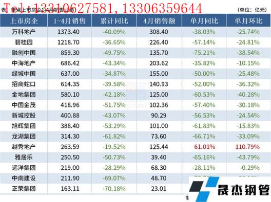 免責(zé)聲明:本網(wǎng)站(山東聊城晟杰無縫鋼管廠www.abagaf.com)刊載的“16家重點(diǎn)房企4月銷售同比降幅擴(kuò)大,樓市“小陽春”未現(xiàn)”等均源于網(wǎng)絡(luò),版權(quán)歸原作者所有,且僅代表原作者觀點(diǎn),本文所載信息僅供參考。轉(zhuǎn)載僅為學(xué)習(xí)與交流之目的,如無意中侵犯您的合法權(quán)益,請(qǐng)及時(shí)聯(lián)系刪除。本網(wǎng)站刊登此篇文章并不意味著本站贊同其觀點(diǎn)或證實(shí)其內(nèi)容的真實(shí)性,我們不對(duì)其科學(xué)性、嚴(yán)肅性等作任何形式的保證。如果侵犯了您的版權(quán),請(qǐng)盡快聯(lián)系我們予以撤銷,謝謝合作!