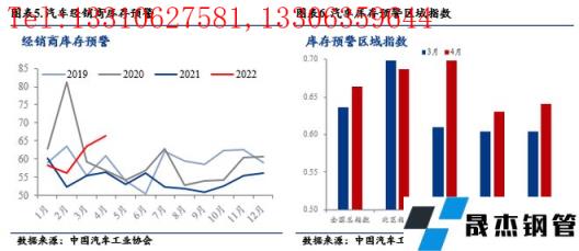 據(jù)調研,受疫情影響,人員居家辦公,用車頻次大幅下降,且疫情對居民收入沖擊,打擊了居民消費欲望。且疫情管控對線下4S零售也造成不同程度影響,中汽協(xié)數(shù)據(jù)顯示,有34個城市出現(xiàn)經(jīng)銷商因疫情防控閉店的現(xiàn)象。2022年4月中國汽車經(jīng)銷商庫存預警指數(shù)達到了66.4%,達到今年新高,東部地區(qū)4月庫存預警指數(shù)環(huán)比3月上升8.8個百分點。