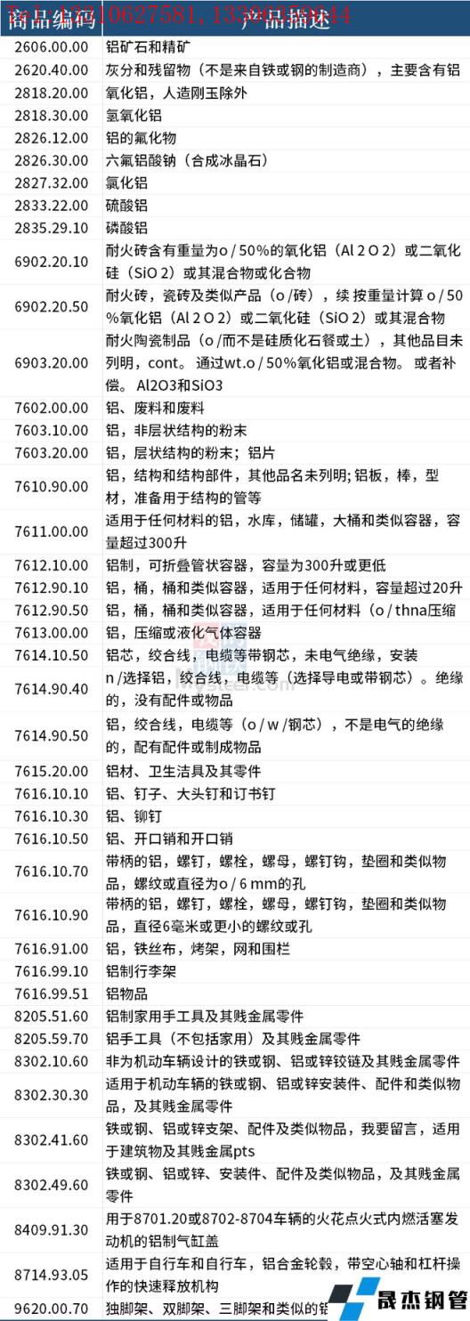 據(jù)不完全整理,美國(guó)征收中國(guó)產(chǎn)品關(guān)稅的清單,涉及鋁相關(guān)產(chǎn)品如下: