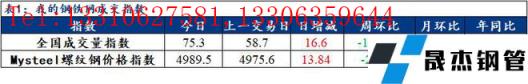 訊:全國(guó)建筑厚壁無縫鋼管成交量監(jiān)測(cè),成交量相對(duì)指數(shù)來看,全國(guó)75.3增16.6,北方69.7增23.4,華東98增18.6,南方55.7增11。今日螺紋鋼價(jià)格指數(shù)4989.5,較上一交易日增13.84。