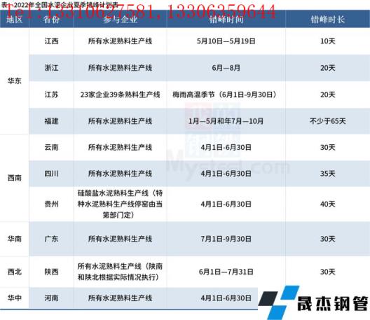 其中,貴州省水泥工業(yè)協(xié)會(huì)在延長2022年二季度錯(cuò)峰生產(chǎn)停窯的通知中表示,由于原燃材料價(jià)格大幅上漲、下游需求持續(xù)低迷、企業(yè)庫存持續(xù)高位,二季度每條生產(chǎn)線在錯(cuò)峰生產(chǎn)停窯40天基礎(chǔ)上再增加5天錯(cuò)峰生產(chǎn)停窯時(shí)間。全國水泥企業(yè)夏季錯(cuò)峰計(jì)劃具體情況如下: