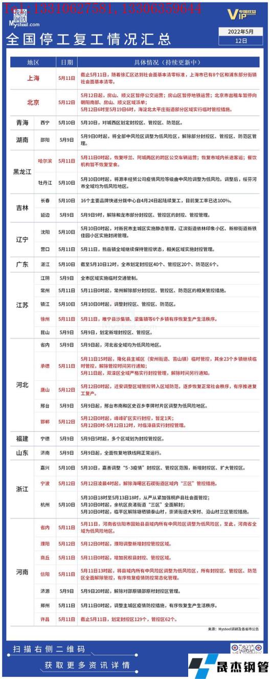 免責(zé)聲明:本網(wǎng)站(山東聊城晟杰無(wú)縫鋼管廠www.abagaf.com)刊載的“疫情影響丨全國(guó)停工復(fù)工情況匯總(5月12日)”等均源于網(wǎng)絡(luò),版權(quán)歸原作者所有,且僅代表原作者觀點(diǎn),本文所載信息僅供參考。轉(zhuǎn)載僅為學(xué)習(xí)與交流之目的,如無(wú)意中侵犯您的合法權(quán)益,請(qǐng)及時(shí)聯(lián)系刪除。本網(wǎng)站刊登此篇文章并不意味著本站贊同其觀點(diǎn)或證實(shí)其內(nèi)容的真實(shí)性,我們不對(duì)其科學(xué)性、嚴(yán)肅性等作任何形式的保證。如果侵犯了您的版權(quán),請(qǐng)盡快聯(lián)系我們予以撤銷(xiāo),謝謝合作!