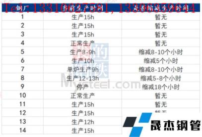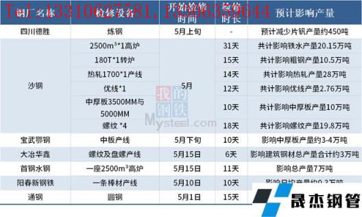 據(jù)不完全統(tǒng)計,截至5月12日,國內7家無縫厚壁鋼管廠家發(fā)布檢修計劃。其中,檢修時間最長的是沙鋼 ,2500m3*1高爐檢修31天,共計影響鐵水產(chǎn)量20.15萬噸。