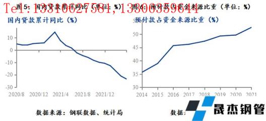 2020年8月,監(jiān)管層設(shè)置“三道紅線”的監(jiān)管指標(biāo),對房企進(jìn)行分檔管理,限制其有息負(fù)債擴張速度;2021年1月,央行、銀保監(jiān)會建立房地產(chǎn)貸款集中度管理制度,對銀行業(yè)金融進(jìn)行管理制度,限制銀行資金過度流入地產(chǎn)行業(yè)。三道紅線及貸款集中制,限制了房地產(chǎn)企業(yè)表內(nèi)融資能力,這兩個政策在2022年2月開始對地產(chǎn)市場產(chǎn)生沖擊,國內(nèi)貸款同比自14.4%的高位持續(xù)回落,延續(xù)至今。至此,房地產(chǎn)企業(yè)的表外融資渠道、表內(nèi)融資渠道都有較大限制,房地產(chǎn)資金短缺問題成為重要的麻煩。但此階段,房地產(chǎn)企業(yè)尚未出現(xiàn)大的危機,主要得益于房價上漲預(yù)期仍在,地產(chǎn)銷售偏好,預(yù)售資金來源尚能支撐地產(chǎn)企業(yè)運行。