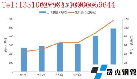 海關(guān)數(shù)據(jù)顯示,自2016年以來(lái),緊固件出口量及出口金額進(jìn)本呈現(xiàn)逐年遞增的情況,其中2018年出口到美國(guó)的總量為64萬(wàn)噸,同比增加4.6萬(wàn)噸,增幅為7.69%;出口金額為12.5億美元,同比增加2.09億美元,增幅為20.08%。