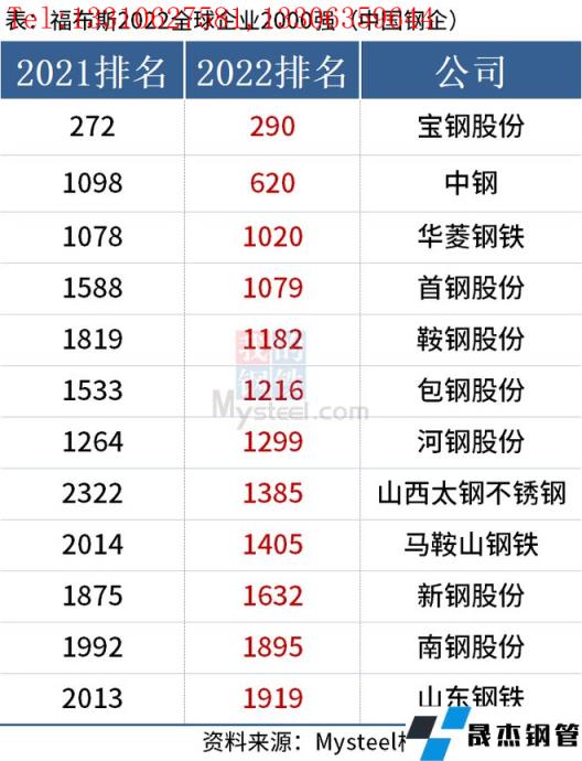 免責(zé)聲明:本網(wǎng)站(山東聊城晟杰無縫鋼管廠www.abagaf.com)刊載的“中國12家鋼企上榜福布斯2022全球企業(yè)2000強(qiáng)”等均源于網(wǎng)絡(luò),版權(quán)歸原作者所有,且僅代表原作者觀點(diǎn),本文所載信息僅供參考。轉(zhuǎn)載僅為學(xué)習(xí)與交流之目的,如無意中侵犯您的合法權(quán)益,請及時(shí)聯(lián)系刪除。本網(wǎng)站刊登此篇文章并不意味著本站贊同其觀點(diǎn)或證實(shí)其內(nèi)容的真實(shí)性,我們不對其科學(xué)性、嚴(yán)肅性等作任何形式的保證。如果侵犯了您的版權(quán),請盡快聯(lián)系我們予以撤銷,謝謝合作!