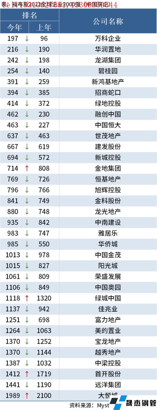 5月12日,福布斯2022全球企業(yè)2000強(qiáng)發(fā)布。據(jù)統(tǒng)計(jì),共有34家中國(guó)房地產(chǎn)企業(yè)上榜,其中金地集團(tuán)、綠城中國(guó)、首開(kāi)股份與大悅城四家房企排名有所上升,剩余30家上榜房企排名均出現(xiàn)下降。