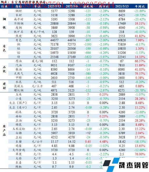 免責聲明:本網站(山東聊城晟杰無縫鋼管廠www.abagaf.com)刊載的“周報:大宗工業(yè)原材料、能源及農產品價格周報(5.09-5.13)”等均源于網絡,版權歸原作者所有,且僅代表原作者觀點,本文所載信息僅供參考。轉載僅為學習與交流之目的,如無意中侵犯您的合法權益,請及時聯(lián)系刪除。本網站刊登此篇文章并不意味著本站贊同其觀點或證實其內容的真實性,我們不對其科學性、嚴肅性等作任何形式的保證。如果侵犯了您的版權,請盡快聯(lián)系我們予以撤銷,謝謝合作!