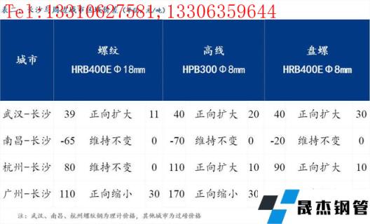 統(tǒng)一為理計單位后,武漢高于長沙39元/噸,南昌低于長沙65元/噸,杭州高于長沙80元/噸,廣州高于長沙110元/噸。