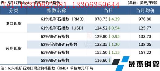 ◎5月17日,全國主港鐵礦石成交96.50萬噸,環(huán)比增40.9%;237家主流貿(mào)易商建材成交14.30萬噸,環(huán)比減17.5%。