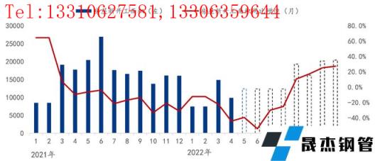 最后再來看新開工下滑所致的用鋼需求減少量,廣州期貨研究中心研究表明,地產(chǎn)新開工面積與施工面積對用鋼需求的貢獻約6:4;而據(jù)測算,螺紋鋼約65%用于地產(chǎn)鋼需。以此估算2022年房地產(chǎn)新開工面積下降所致的螺紋鋼消費將同比減量約1816萬噸,建筑厚壁無縫鋼管消費將同比減量約2754萬噸。