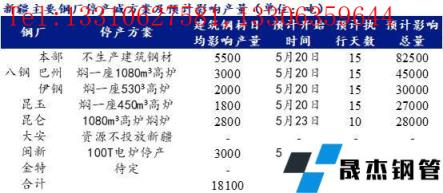根據(jù)初步減限產(chǎn)方案,八鋼本部4座高爐全開,但不生產(chǎn)建筑厚壁無(wú)縫鋼管,預(yù)計(jì)影響建筑厚壁無(wú)縫鋼管產(chǎn)量5500噸/日,巴州和伊鋼基地各燜一座高爐,預(yù)計(jì)影響建筑厚壁無(wú)縫鋼管產(chǎn)量分別為3000噸/日和2000噸/日;昆玉燜一座高爐,預(yù)計(jì)影響建筑厚壁無(wú)縫鋼管產(chǎn)量1800噸/噸;昆侖和閩新無(wú)縫厚壁鋼管廠家建筑厚壁無(wú)縫鋼管停產(chǎn)十天,預(yù)計(jì)分別影響建筑厚壁無(wú)縫鋼管產(chǎn)量2800噸/日和3000噸/日;大安鋼鐵資源暫不投往新疆區(qū)域;金特待定。