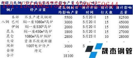 根據(jù)初步減限產(chǎn)方案,八鋼本部4座高爐全開(kāi),但不生產(chǎn)建筑厚壁無(wú)縫鋼管,預(yù)計(jì)影響建筑厚壁無(wú)縫鋼管產(chǎn)量5500噸/日,巴州和伊鋼基地各燜一座高爐,預(yù)計(jì)影響建筑厚壁無(wú)縫鋼管產(chǎn)量分別為3000噸/日和2000噸/日;昆玉燜一座高爐,預(yù)計(jì)影響建筑厚壁無(wú)縫鋼管產(chǎn)量1800噸/日;昆侖和閩新無(wú)縫厚壁鋼管廠家建筑厚壁無(wú)縫鋼管停產(chǎn)十天,預(yù)計(jì)分別影響建筑厚壁無(wú)縫鋼管產(chǎn)量2800噸/日和3000噸/日;大安鋼鐵資源暫不投往新疆區(qū)域;金特待定。