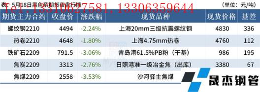 ◎5月18日,全國主港鐵礦石成交84.00萬噸,環(huán)比減13%;237家主流貿(mào)易商建材成交12.63萬噸,環(huán)比減11.7%。