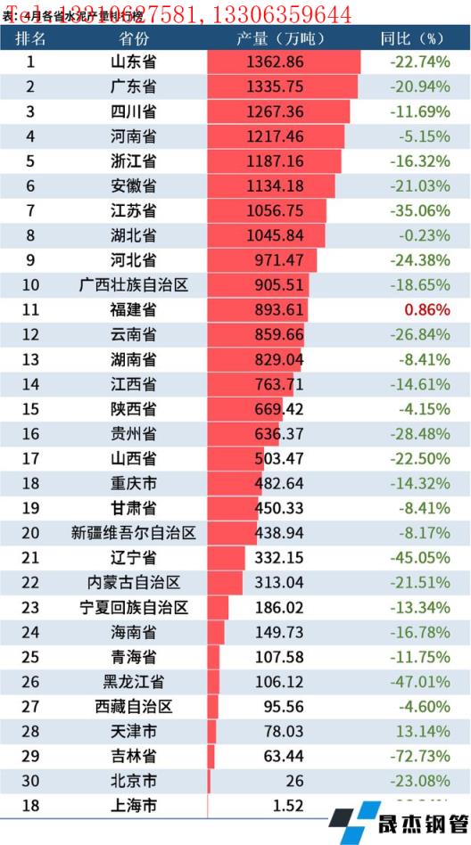免責(zé)聲明:本網(wǎng)站(山東聊城晟杰無縫鋼管廠www.abagaf.com)刊載的“統(tǒng)計(jì)局:前4月全國分省市水泥產(chǎn)量出爐,粵川蘇皖降超10%”等均源于網(wǎng)絡(luò),版權(quán)歸原作者所有,且僅代表原作者觀點(diǎn),本文所載信息僅供參考。轉(zhuǎn)載僅為學(xué)習(xí)與交流之目的,如無意中侵犯您的合法權(quán)益,請(qǐng)及時(shí)聯(lián)系刪除。本網(wǎng)站刊登此篇文章并不意味著本站贊同其觀點(diǎn)或證實(shí)其內(nèi)容的真實(shí)性,我們不對(duì)其科學(xué)性、嚴(yán)肅性等作任何形式的保證。如果侵犯了您的版權(quán),請(qǐng)盡快聯(lián)系我們予以撤銷,謝謝合作!