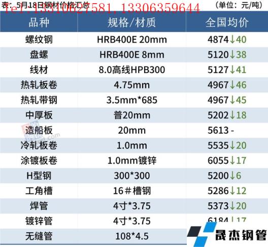 5月18日,國內(nèi)厚壁無縫鋼管市場下跌為主,唐山鋼坯出廠價格跌40報(bào)4520元/噸。實(shí)際成交暗降情況明顯,全天成交偏弱。
