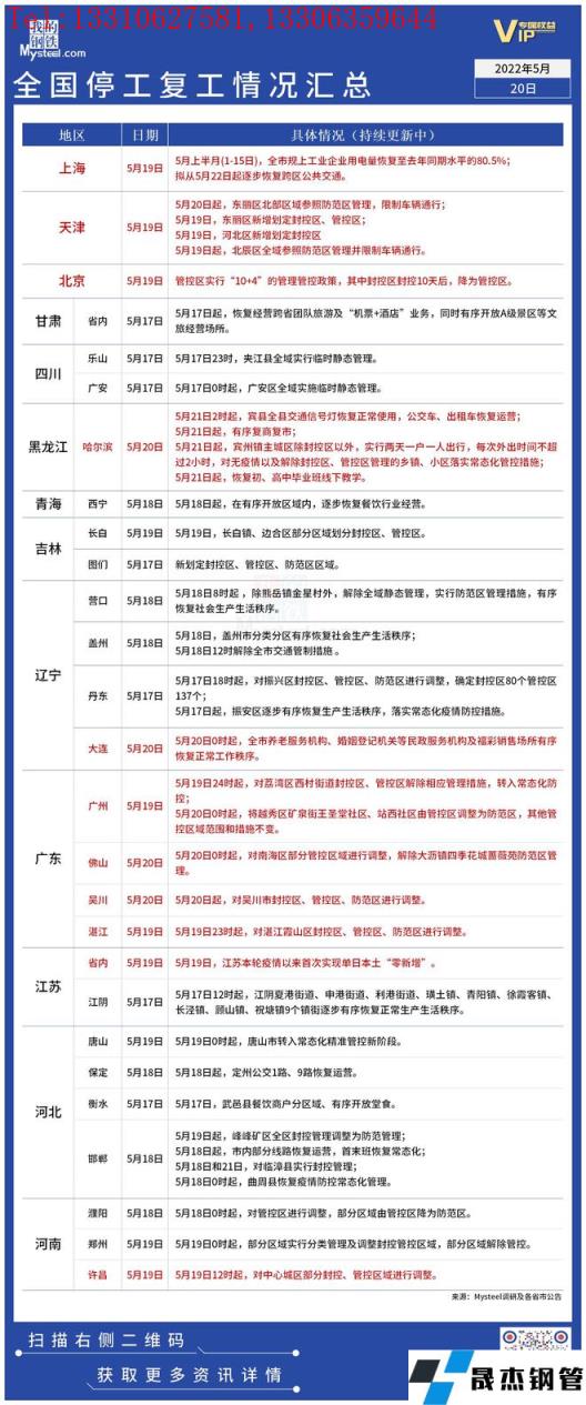 免責(zé)聲明:本網(wǎng)站(山東聊城晟杰無縫鋼管廠www.abagaf.com)刊載的“疫情影響丨全國停工復(fù)工情況匯總(5月20日)”等均源于網(wǎng)絡(luò),版權(quán)歸原作者所有,且僅代表原作者觀點,本文所載信息僅供參考。轉(zhuǎn)載僅為學(xué)習(xí)與交流之目的,如無意中侵犯您的合法權(quán)益,請及時聯(lián)系刪除。本網(wǎng)站刊登此篇文章并不意味著本站贊同其觀點或證實其內(nèi)容的真實性,我們不對其科學(xué)性、嚴(yán)肅性等作任何形式的保證。如果侵犯了您的版權(quán),請盡快聯(lián)系我們予以撤銷,謝謝合作!