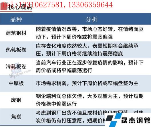 宏觀面,今日央行宣布5年期LPR下調(diào),也意味著個人住房貸款利率最低可達(dá)首套房4.25%,利好房地產(chǎn)市場。產(chǎn)業(yè)面,調(diào)研85家獨立電弧爐無縫厚壁鋼管廠家平均虧損86元/噸,本周電爐廠減產(chǎn)力度明顯加大,高爐廠鐵水產(chǎn)量變化不大。本周鋼市成交量大起大落,體現(xiàn)需求不穩(wěn)定,市場信心不足。短期鋼價漲跌反復(fù),處于震蕩筑底階段,隨著國內(nèi)疫情防控形勢進一步好轉(zhuǎn),預(yù)計國內(nèi)經(jīng)濟逐步復(fù)蘇,鋼市供需壓力逐步緩解,中期來看有望呈現(xiàn)震蕩反彈行情。