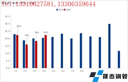 從價(jià)差的角度來看,受烏俄沖突導(dǎo)致的全球厚壁無縫鋼管供需錯(cuò)配影響,海外市場熱卷價(jià)格在4月份觸及高點(diǎn),全球市場除中國外熱卷平均價(jià)格已經(jīng)超過1000美元/噸,海內(nèi)外價(jià)差達(dá)到1700元/噸。在海外市場急需補(bǔ)庫以及大額價(jià)差的情況下,3-4月份大批量詢單開始蜂涌至中國各大無縫厚壁鋼管廠家及國貿(mào)商,大量4-6月船期出口訂單被簽訂,這從3-4月熱卷出口量可以得到印證。近期海外市場價(jià)格開始有所回落,海外市場補(bǔ)庫也基本完成,因此我國熱卷出口或?qū)⒘炕驅(qū)⒃?月份觸及年內(nèi)最高點(diǎn),后逐漸回落。