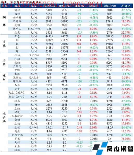免責(zé)聲明:本網(wǎng)站(山東聊城晟杰無(wú)縫鋼管廠www.abagaf.com)刊載的“周報(bào):大宗工業(yè)原材料、能源及農(nóng)產(chǎn)品價(jià)格周報(bào)(5.16-5.20)”等均源于網(wǎng)絡(luò),版權(quán)歸原作者所有,且僅代表原作者觀點(diǎn),本文所載信息僅供參考。轉(zhuǎn)載僅為學(xué)習(xí)與交流之目的,如無(wú)意中侵犯您的合法權(quán)益,請(qǐng)及時(shí)聯(lián)系刪除。本網(wǎng)站刊登此篇文章并不意味著本站贊同其觀點(diǎn)或證實(shí)其內(nèi)容的真實(shí)性,我們不對(duì)其科學(xué)性、嚴(yán)肅性等作任何形式的保證。如果侵犯了您的版權(quán),請(qǐng)盡快聯(lián)系我們予以撤銷(xiāo),謝謝合作!