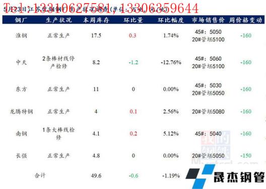 江蘇優(yōu)特無縫厚壁鋼管廠家棒材總庫存49.6萬噸,較上周減少0.6萬噸,環(huán)比降1.19%,較去年同期增加13.38萬噸,同比增36.94%,目前省內(nèi)南鋼一條大棒線檢修,中天2條棒材線檢修,其余無縫厚壁鋼管廠家正常生產(chǎn)。
