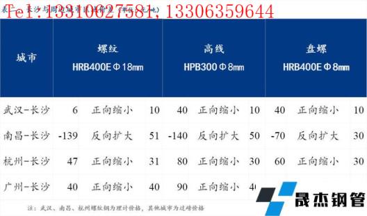 統(tǒng)一為理計單位后,武漢高于長沙6元/噸,南昌低于長沙139元/噸,杭州高于長沙47元/噸,廣州高于長沙40元/噸。